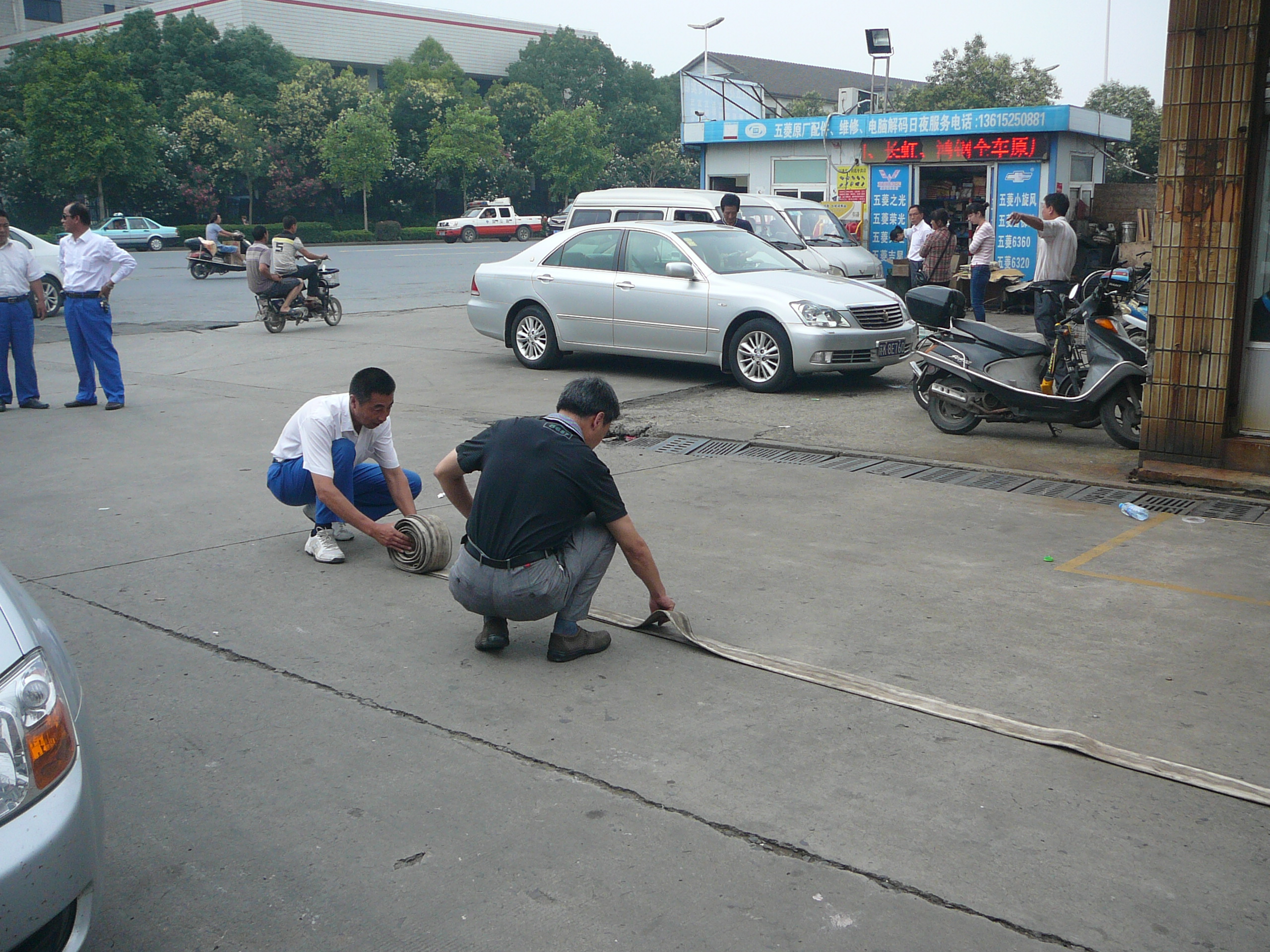 在活動現(xiàn)場,消防隊員每兩人一組,進行撒水帶、連接消防接口等方法的演練。隊員們一絲不茍地按照工作流程進行著操作,并熟練地掌握了消防栓連接操作要領(lǐng),即用手卡住水帶,小手臂用力,向前方拋出四十五度左右時,除拇指和食指外,其余手指自然松開,水帶主體拋出,手中只留兩個接口;將其中一個接口放在地上或就地在消防栓栓口,消防栓出水,分水器口;拿起另一個接口迅速向前方跑去,邊跑邊拿出水槍進行連接。