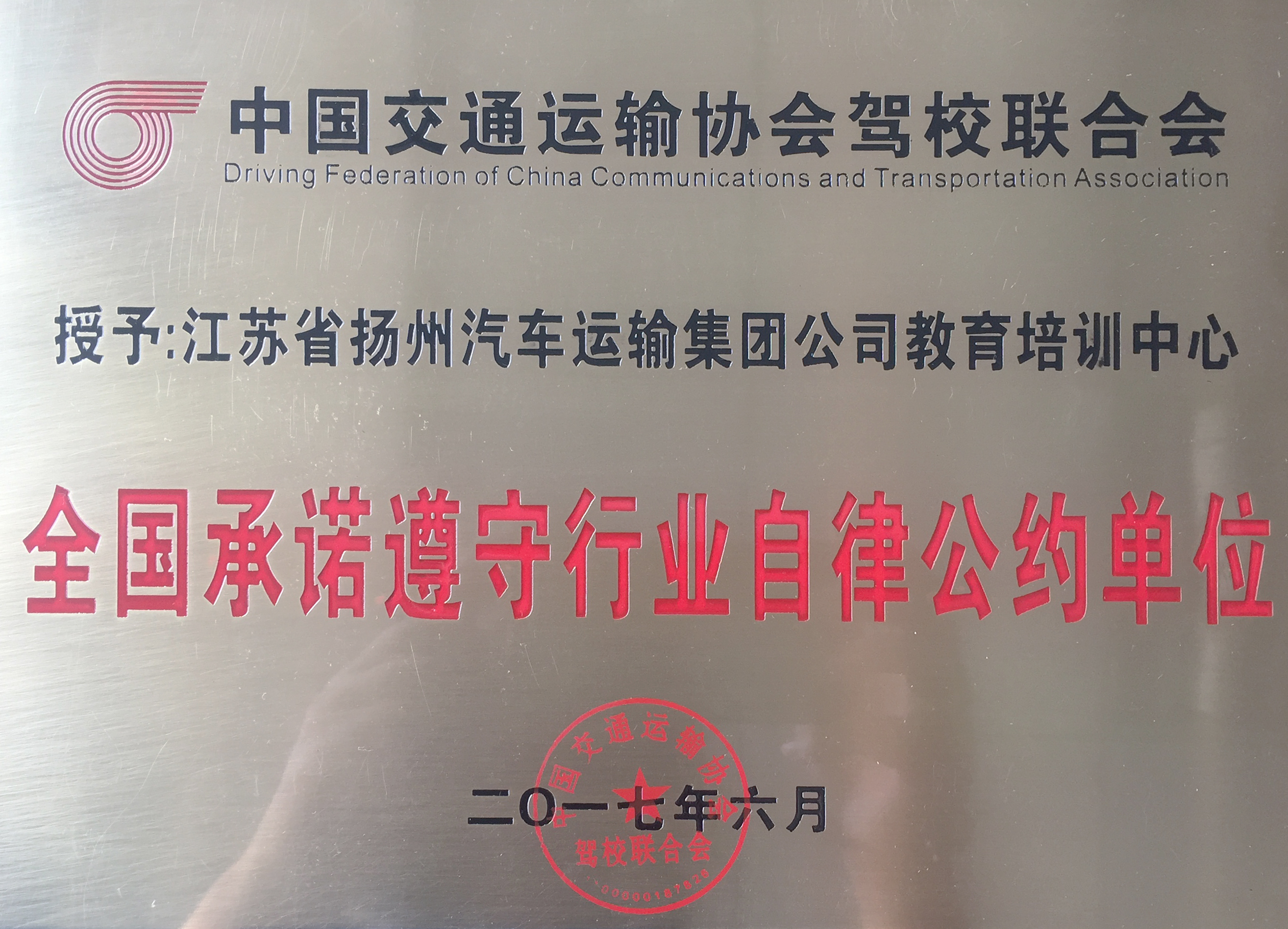 揚汽駕校再獲“全國行業(yè)自律先進駕校”