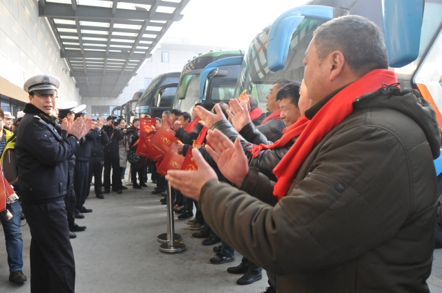 2月1日上午8點(diǎn)30分,揚(yáng)州市2018年春運(yùn)啟動(dòng)儀式在西部樞紐揚(yáng)州客運(yùn)站舉行。民警、駕駛員、美團(tuán)騎手、文明交通志愿者等代表參加活動(dòng)。揚(yáng)州市公安局、交通運(yùn)輸局、安監(jiān)局、交警支隊(duì)、運(yùn)管處、中國(guó)人壽、揚(yáng)汽集團(tuán)等部門單位領(lǐng)導(dǎo)出席活動(dòng)。