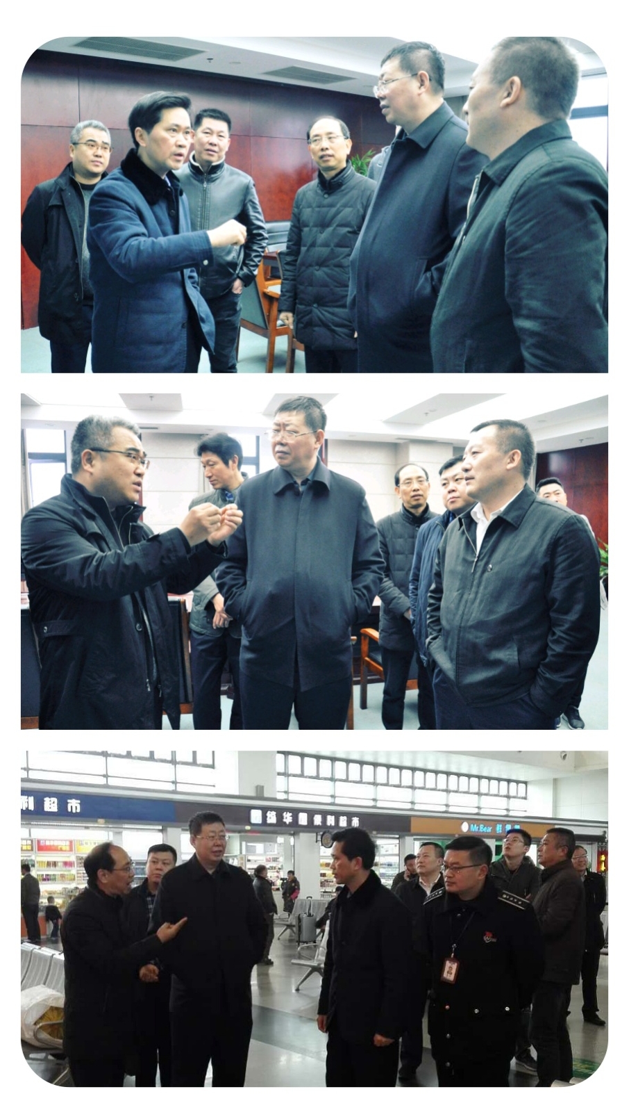 督導(dǎo)組一行查看了售票廳、候車廳,詳細(xì)詢問了今年春運客流情況。交通產(chǎn)業(yè)集團(tuán)副總經(jīng)理、揚(yáng)汽集團(tuán)總經(jīng)理、黨委書記曹遠(yuǎn)志就春運節(jié)前客流、節(jié)后客流預(yù)測、運力組織、優(yōu)質(zhì)服務(wù)、安全保障等方面情況進(jìn)行了匯報。督導(dǎo)組要求我司要結(jié)合春運氣候特點,全面掌握班線兩端的開行情況,加強(qiáng)車輛監(jiān)控,加強(qiáng)場站管理,高度重視春運工作,高標(biāo)準(zhǔn)完成春運任務(wù)。