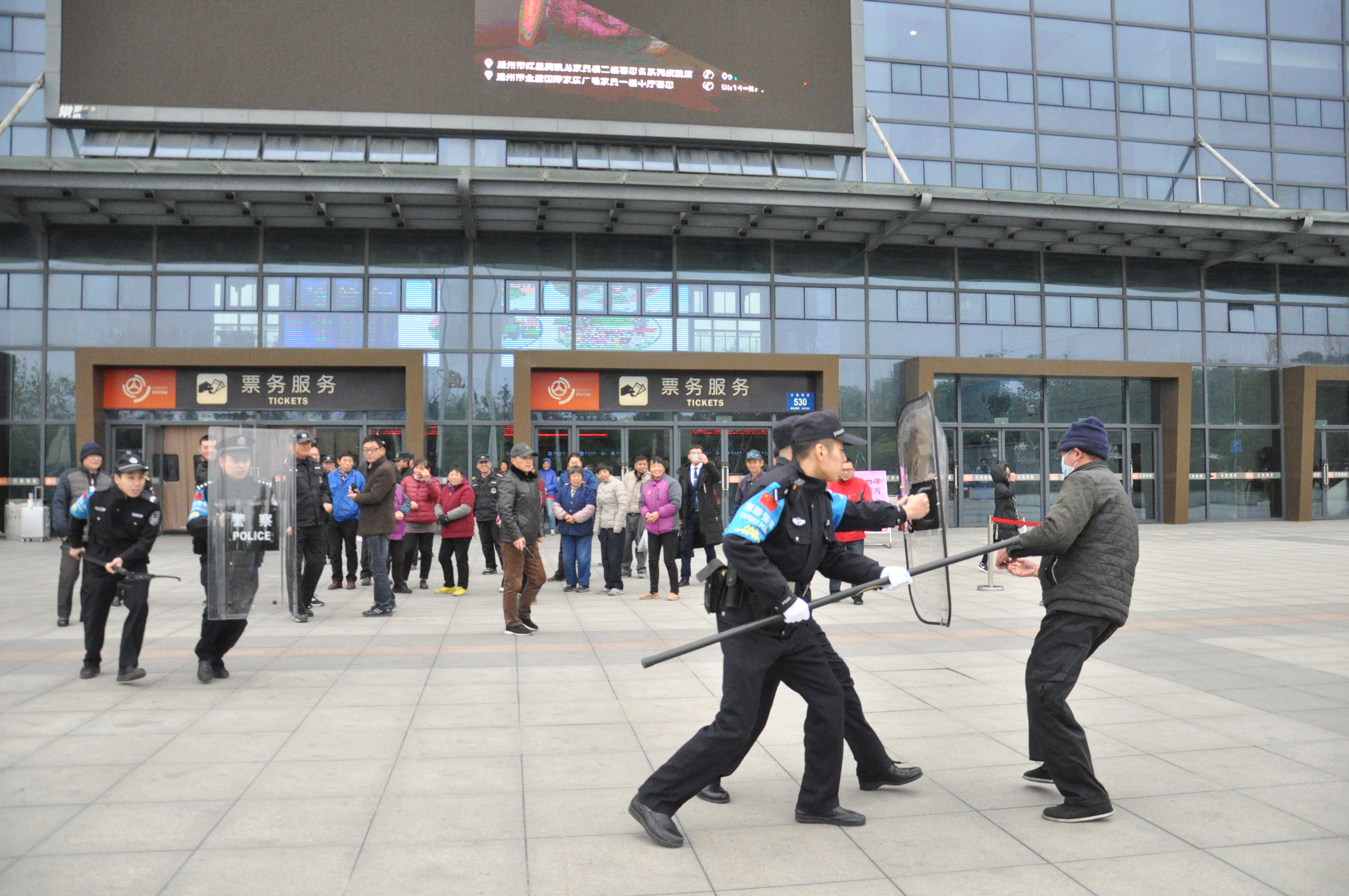 為有效防范公共場(chǎng)所可能發(fā)生的暴力恐怖事件,加強(qiáng)車站工作人員安全防范意識(shí),提高對(duì)突發(fā)事件的應(yīng)急處置能力,12月7日下午,揚(yáng)州站聯(lián)合揚(yáng)州市公安局公交治安分局汽車總站派出所,在站前廣場(chǎng)開展年度反恐防暴演練。