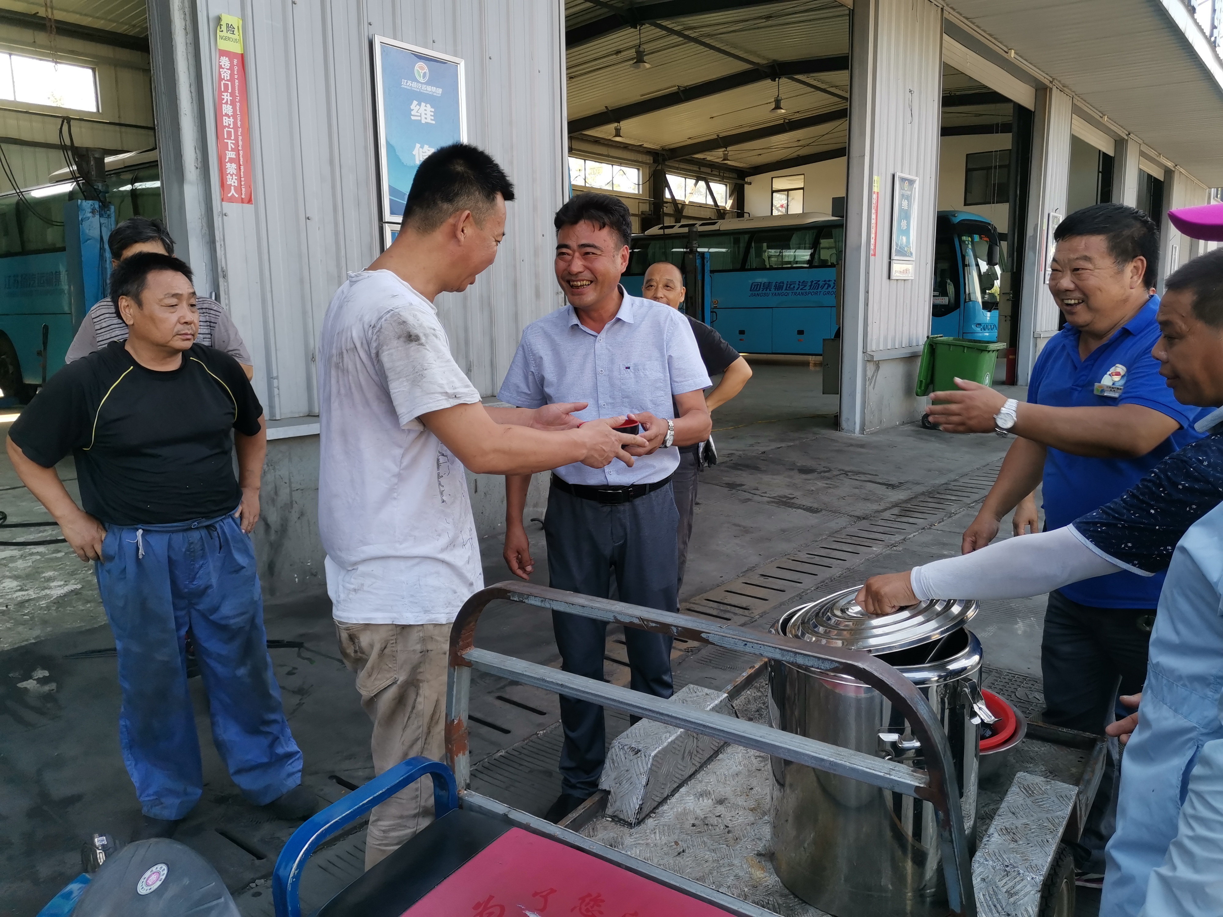 為做好防暑降溫工作,保障生產(chǎn)一線職工的健康權(quán)益, 8月19日至20日,集團(tuán)公司工會(huì)組織開展“送清涼”慰問活動(dòng),采購了近400份毛巾、肥皂、花露水、菊花茶等清涼祛暑用品。集團(tuán)公司黨委副書記、工會(huì)主席顧懷帶隊(duì)先后來到三大車站、修理廠和教培中心,把清涼用品送到一線職工手中,感謝他們的辛勤付出,并囑咐大家合理調(diào)整作息時(shí)間,科學(xué)安排工作量,防范各類安全事故的發(fā)生。