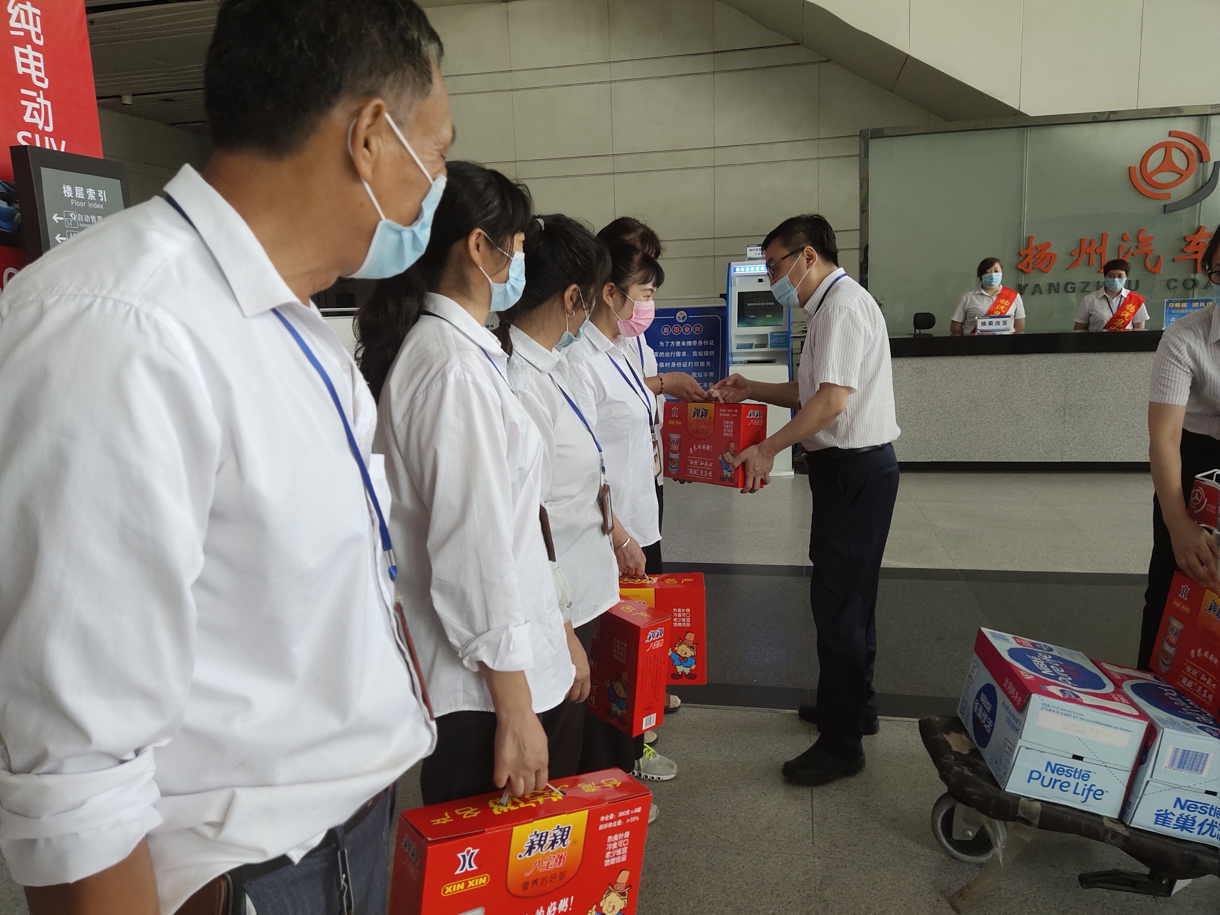 揚(yáng)州站:在疫情防控進(jìn)入常態(tài)化的情況下,揚(yáng)州站疫情防控工作絲毫沒有松懈,連日的高溫,給揚(yáng)州站疫情防控工作也帶來了挑戰(zhàn)。為了進(jìn)一步鼓勵(lì)一線職工的斗志,8月18日揚(yáng)州站組織了送涼爽慰問活動(dòng),向高溫天氣中堅(jiān)守崗位的志愿者、保潔等一線職工送去防暑降溫慰問品,在慰問中叮囑職工注意防暑降溫、勞逸結(jié)合,做好安全保障措施,確保勞動(dòng)安全和身體健康。同時(shí)也進(jìn)一步勉勵(lì)他們更好的做好服務(wù)工作,為打造平安揚(yáng)州、幸福揚(yáng)州、精致?lián)P州做貢獻(xiàn)。