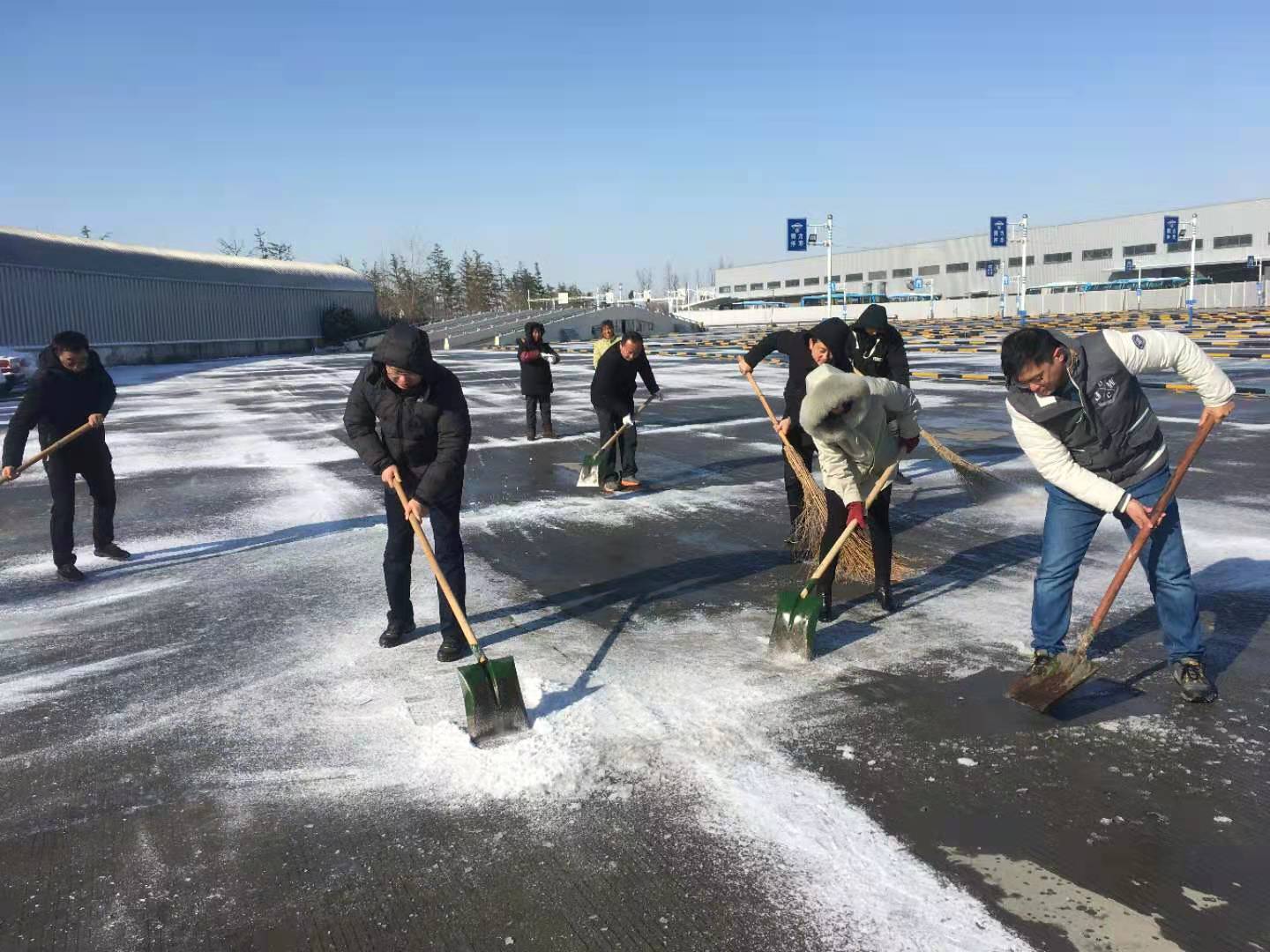 12月30日早上各黨支部積極響應(yīng)集團(tuán)黨委號(hào)召,組織黨員干部、管理人員協(xié)助車站清理積雪,在站前廣場(chǎng)、發(fā)車平臺(tái),進(jìn)出站口等重點(diǎn)部位,大家拿著掃把、草墊、鐵鍬、雪鏟,充分發(fā)揮團(tuán)隊(duì)協(xié)作精神,干勁十足,一派熱火朝天景象,為班線開(kāi)通做好后勤保障。