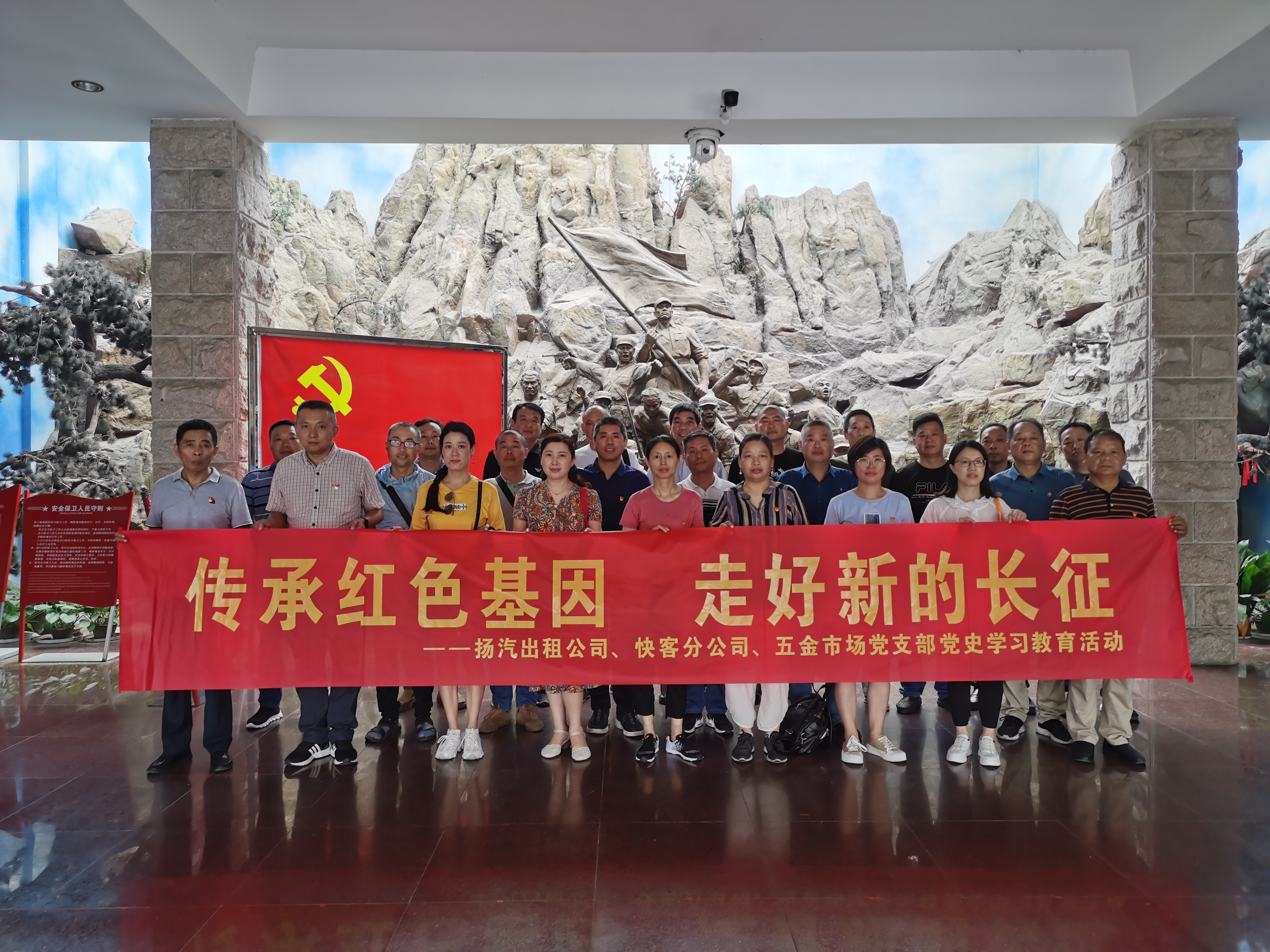 為豐富黨史學(xué)習(xí)教育形式,進(jìn)一步提升學(xué)習(xí)效果,7月16日,揚(yáng)汽出租、快客分公司、五金市場(chǎng)黨支部聯(lián)合組織20余名黨員赴鎮(zhèn)江茅山新四軍紀(jì)念館開(kāi)展“傳承紅色基因 走好新的長(zhǎng)征”主題黨日活動(dòng)。