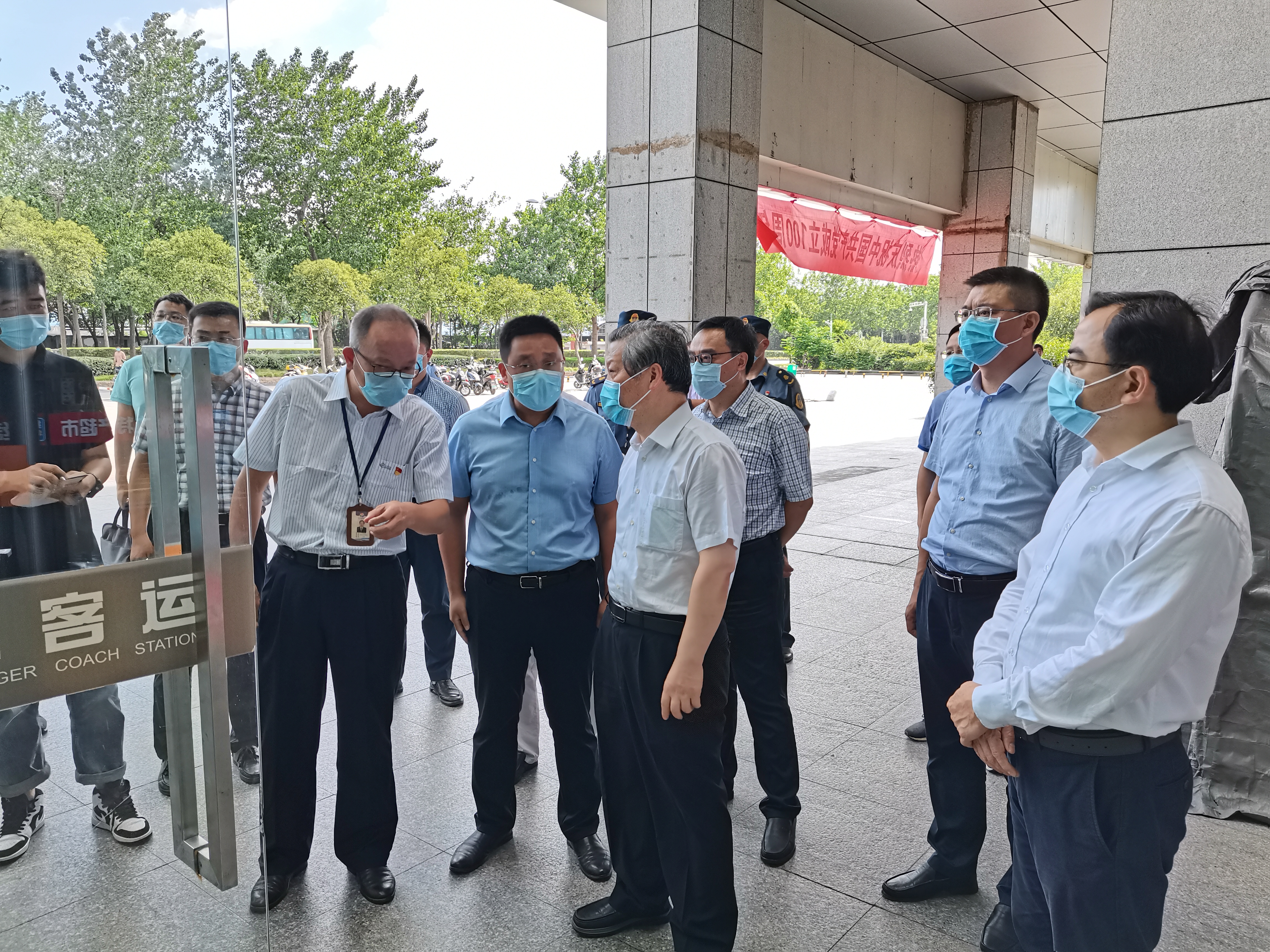 7月23日下午,市委副書(shū)記、統(tǒng)戰(zhàn)部部長(zhǎng)孔令俊帶隊(duì)來(lái)汽車(chē)東站檢查疫情防控工作,市人大常委會(huì)副主任范天恩、廣陵區(qū)委書(shū)記朱勇、區(qū)委副書(shū)記李斌、副區(qū)長(zhǎng)葉浩等領(lǐng)導(dǎo)陪同檢查。