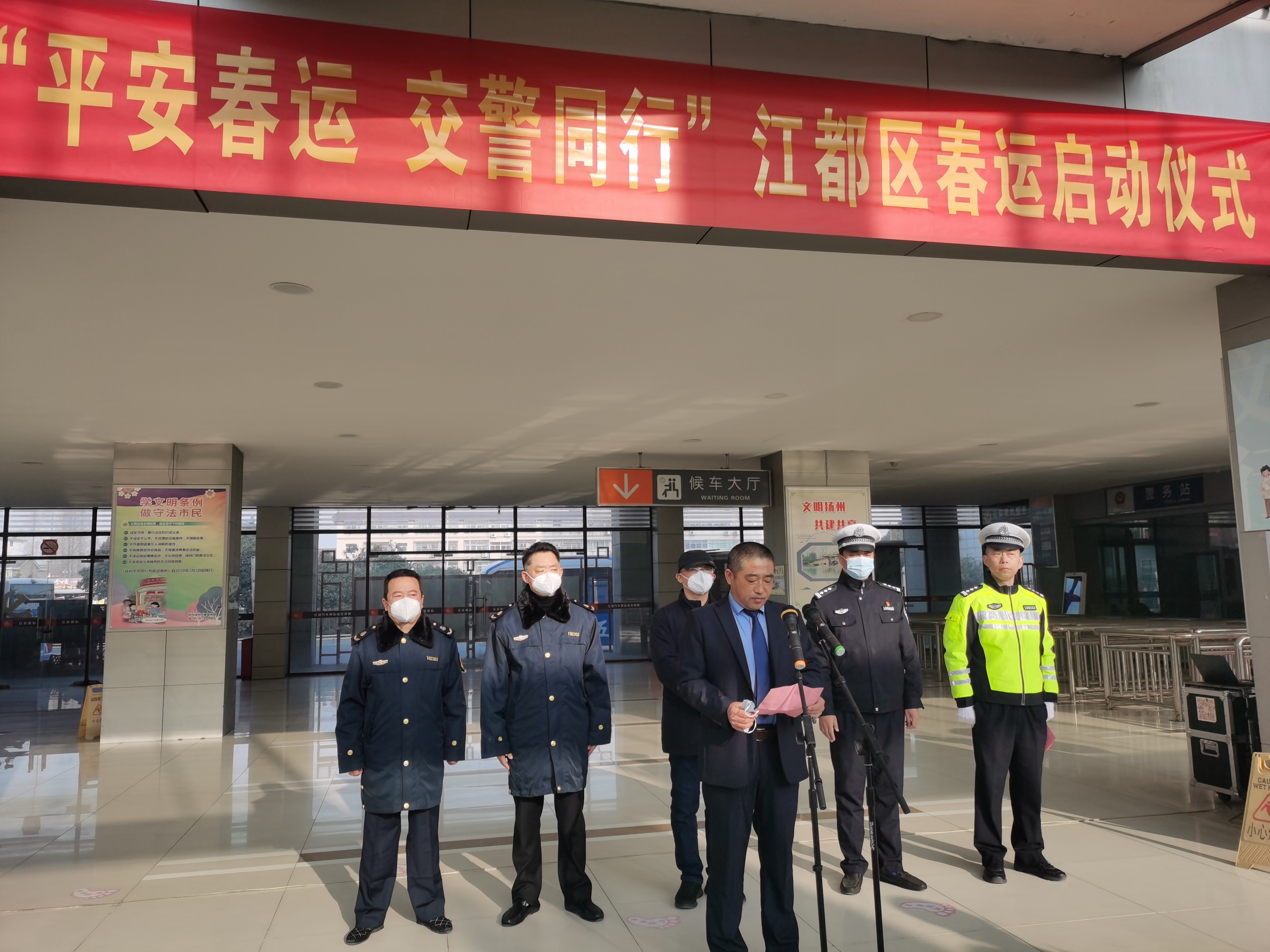 1月7日,2023年“平安春運 交警同行”啟動儀式在江都汽車客運站售票大廳內(nèi)舉行。江都區(qū)公安局副局長、交警大隊大隊長宦新宇,江都區(qū)交警大隊車管所所長滕斌,揚汽集團(tuán)相關(guān)負(fù)責(zé)人參加活動。