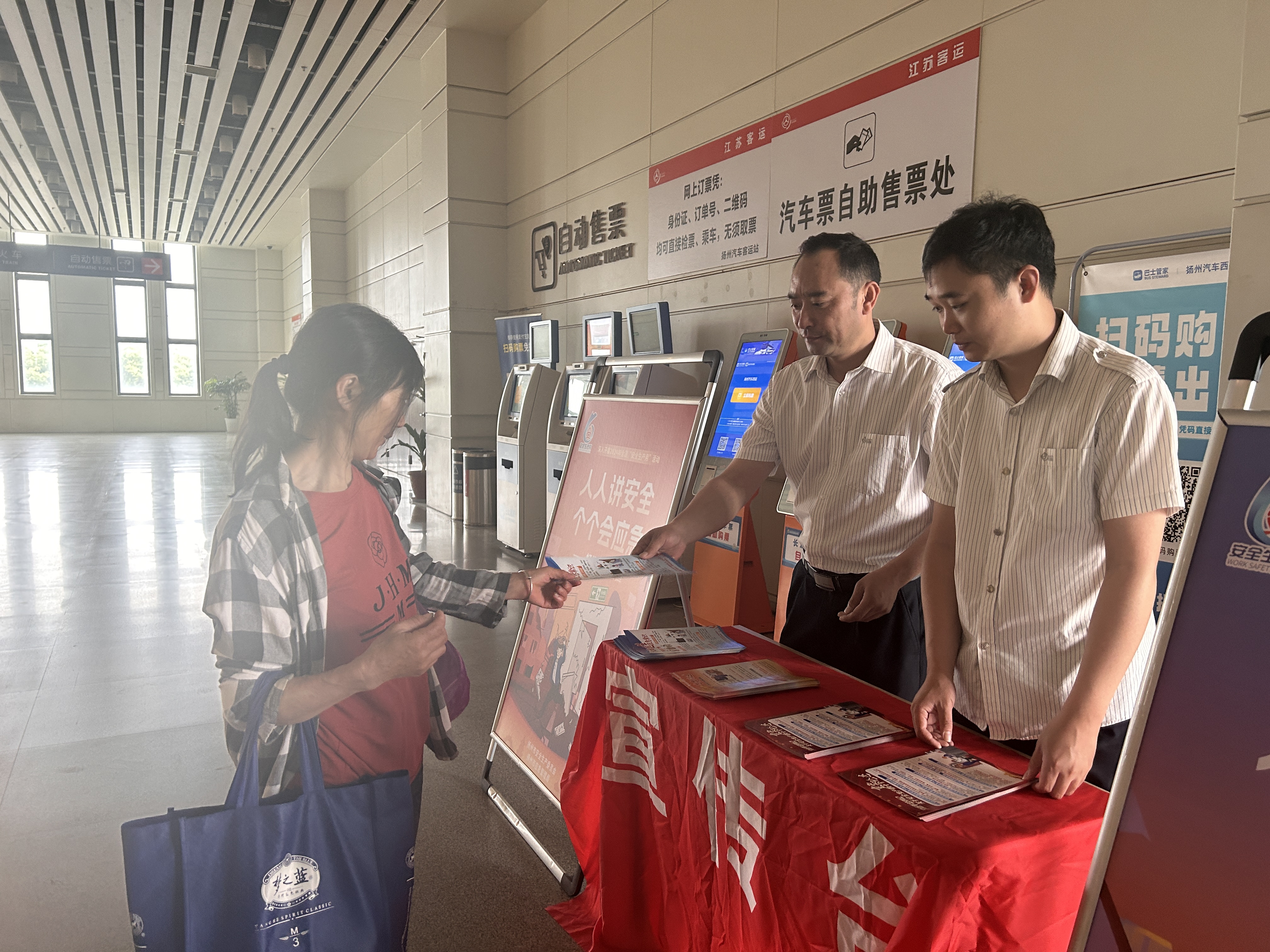活動(dòng)現(xiàn)場(chǎng),各汽車客運(yùn)站工作人員通過發(fā)放安全生產(chǎn)知識(shí)宣傳單、應(yīng)急處置手冊(cè)和現(xiàn)場(chǎng)答疑等方式,集中宣傳了安全生產(chǎn)法律法規(guī)、安全知識(shí)、應(yīng)急逃生技能等信息,同時(shí)就旅客在旅途過程中遇到的安全問題提供咨詢解答,進(jìn)一步營(yíng)造了安全生產(chǎn)人人參與的良好氛圍;顒(dòng)現(xiàn)場(chǎng)氣氛熱烈,吸引了不少旅客積極參與,讓廣大從業(yè)人員及乘客受益匪淺。
