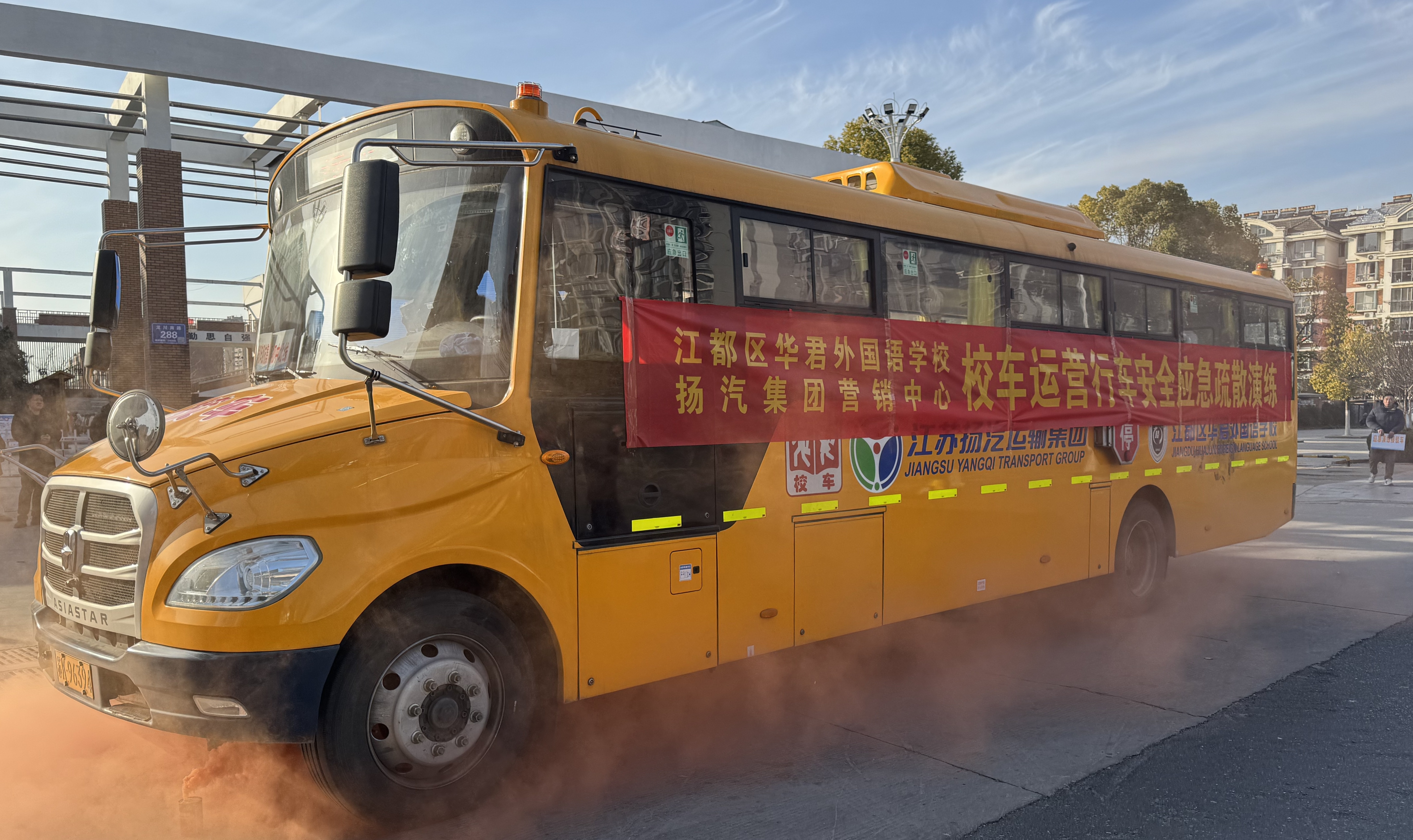 為進(jìn)一步加強(qiáng)校車安全管理,提高師生在校車行駛中的安全應(yīng)急疏散能力,近日,揚(yáng)汽集團(tuán)與江都區(qū)華君外國語學(xué)校聯(lián)合開展了校車運(yùn)營行車安全應(yīng)急疏散演練。揚(yáng)汽集團(tuán)副總經(jīng)理劉旭亮,江都區(qū)華君外國語學(xué)校副校長張?zhí)毂,各單位的安全管理人員及師生共40余人參加本次活動(dòng)。